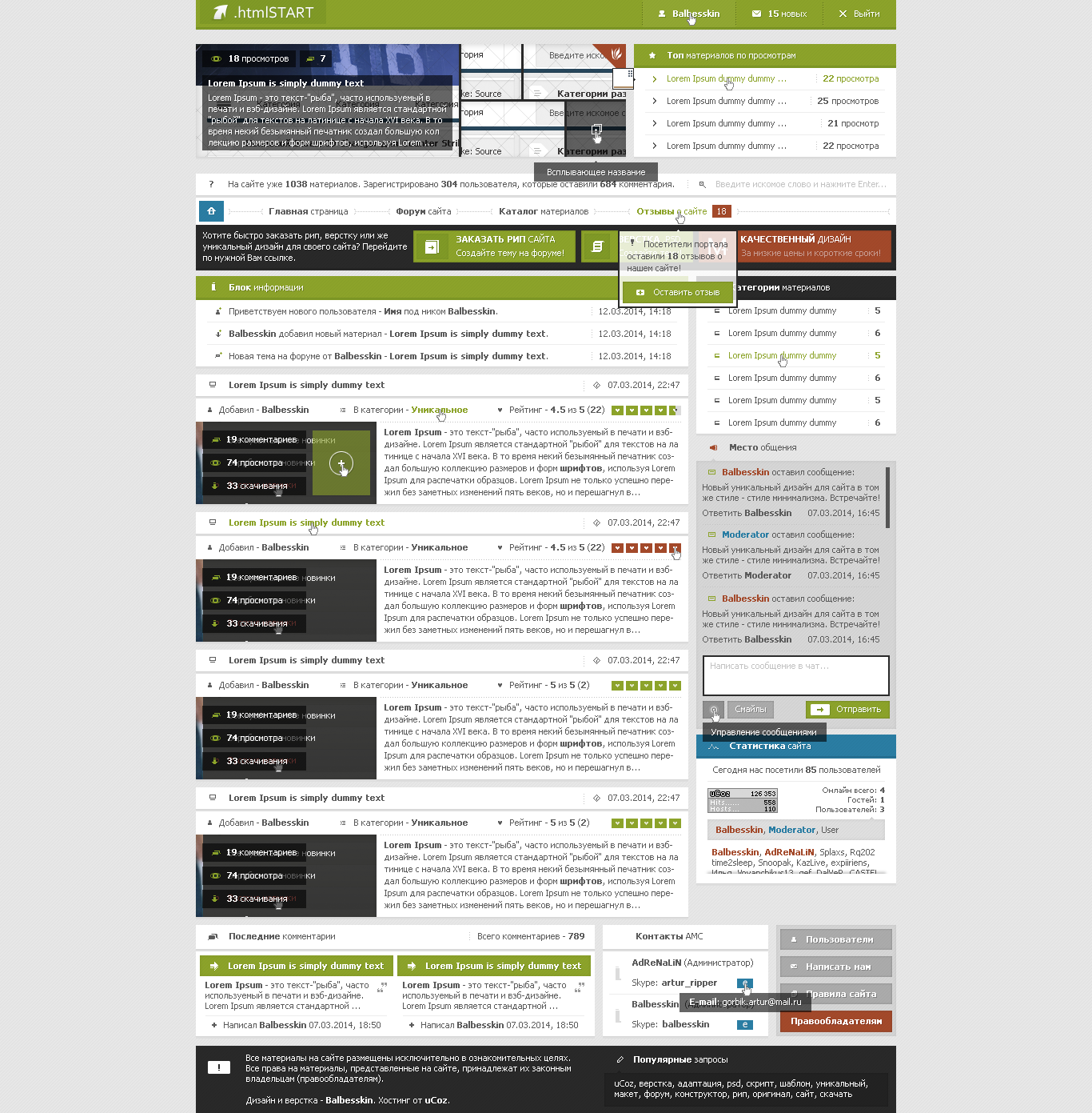 Макет под названием "LiveArena". Данный макет подойдет как для игрового портала, так и для игрового блога.В макете есть небольшой слайдер, информер с последними обзорами, красивый и не сложный вид материалов. Скажу вам сразу макет удобный и по себе не сложный.